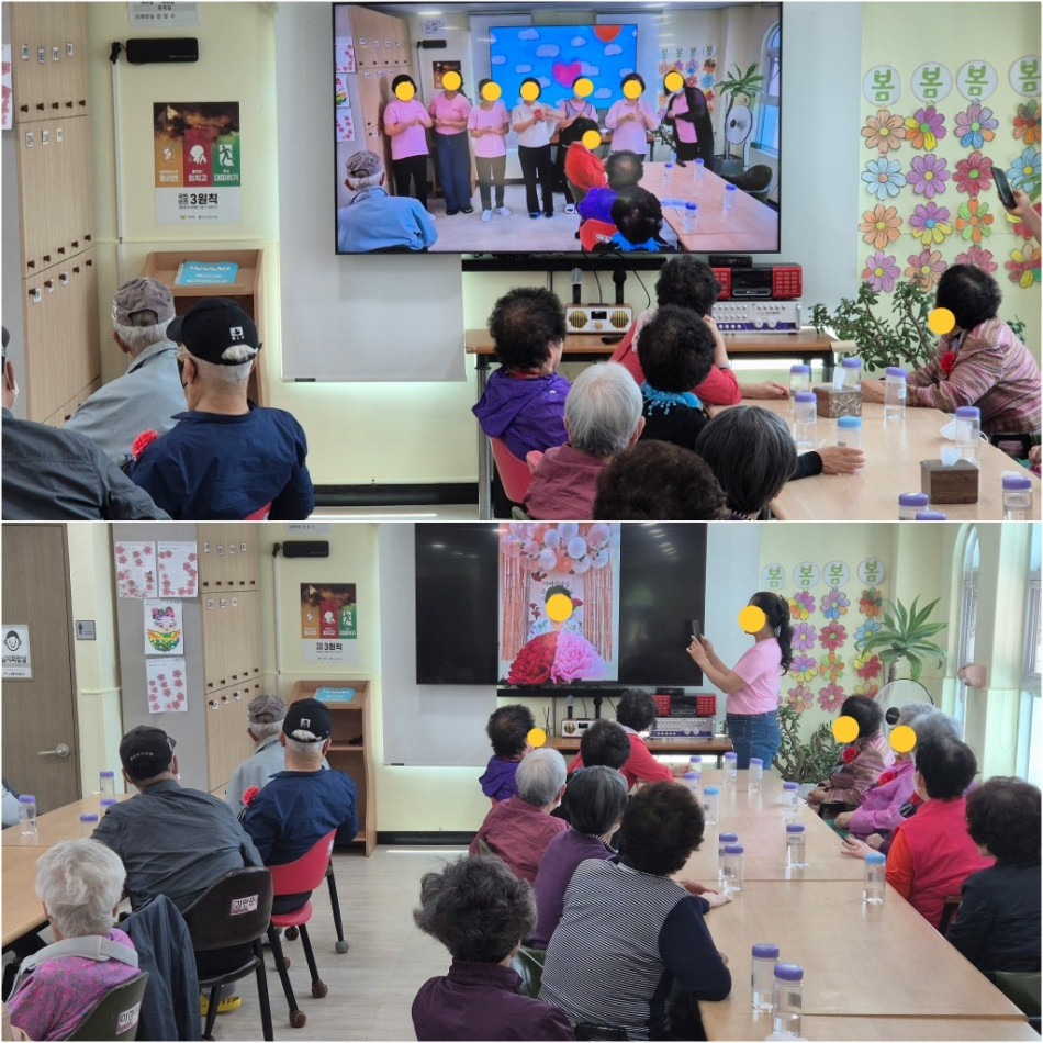 지난주에는 5월 8일 어버이날을 맞이하여 센터장님과 직원들이 앞에 나가 "어버이 은혜"를 불러드리며 오늘을 기념하였는데요.