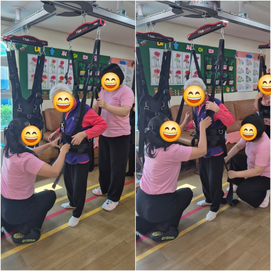 이처럼 "워크메이트"는 어르신 스스로 걸을 수 있도록 도와주는 보행 재활기구입니다이는 다리의 근력감각을 향상 시켜주며자립 보행을 가능케 합니다. 자, "워크메이트" 왜 좋은지 이제 알겠고! 우리 어르신들 어떻게 운동하셨는지 한 번 볼까요? ^^